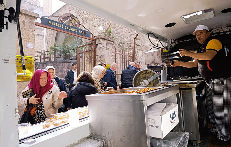 Cami avlusunda yapılan lokma ikramı sırasında duygusal anlar yaşanırken, vatandaşlar etkinliğe yoğun ilgi gösterdi.